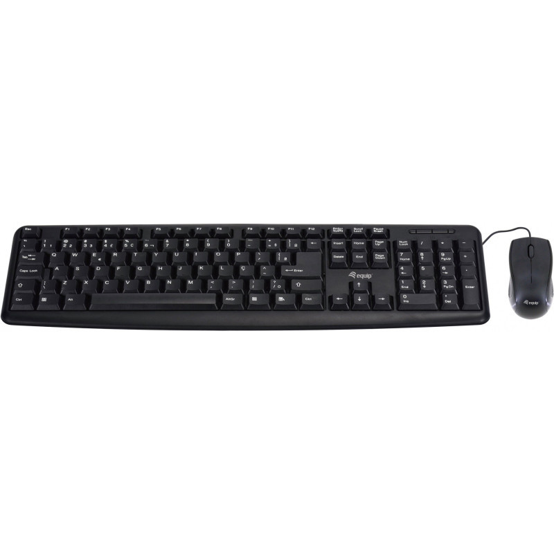 "Equip 245202. Keyboard form factor: Full-size (100%). Keyboard style: Straight. Connectivity technology: Wired, Device interface: USB, Keyboard layout: QWERTY, Keyboard number of keys: 105. Cable length: 1.35 m. Recommended usage: Office. Product colour: Black. Mouse included"\n"This wired keyboard and mouse combination is an essential companion for the home or office. Simply plug and play to get easy, seamless performance from your devices. The standard keyboard features a full suite of 105 soft-touch keys for accurate, comfortable typing.