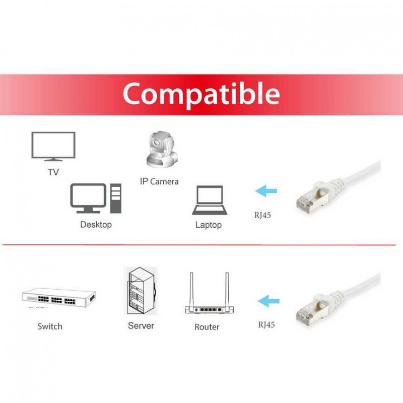 "Equip Cat.6 S/FTP Patch Cable, 15m, White. Cable length: 15 m, Cable standard: Cat6, Cable shielding: S/FTP (S-STP), Connector 1: RJ-45, Connector 2: RJ-45, Connector contacts plating: Gold, Data transfer rate: 1000 Mbit/s, Product colour: White"\n"The equip® Cat.6 S/FTP Patch Cord is composed of high-quality materials and fully-examined to conform with industrial standards. Offering higher bandwidth and better signal-to-noise margin, the Cat.6 cable is able to deliver ultrahigh and error-free performance in the most demanding network environments."