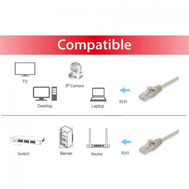 "Equip Cat.6 U/UTP Patch Cable, 10m, Beige. Cable length: 10 m, Cable standard: Cat6, Cable shielding: U/UTP (UTP), Connector 1: RJ-45, Connector 2: RJ-45, Connector contacts plating: Gold, Data transfer rate: 10000 Mbit/s, Product colour: Beige"\n"The equip® Cat.6 U/UTP Patch Cable is composed of preeminent materials and fully-examined to conform with industrial standards. Offering higher bandwidth and better signal-to-noise margin, the Cat.6 cable is able to deliver ultrahigh and error-free performance in the most demanding network environments."