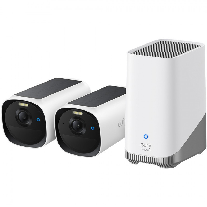 "Eufy eufyCam E40 2-Cam Kit + HomeBase S380. Type: IP security camera, Placement supported: Outdoor, Connectivity technology: Wired & Wireless. Mounting type: Wall, Product colour: Black, White, Form factor: Bullet. Field of view (FOV) angle: 130°. LED type: IR. Maximum resolution: 2688 x 1520 pixels, Frame rate: 15 fps"\n"Focused Two-Way Audio