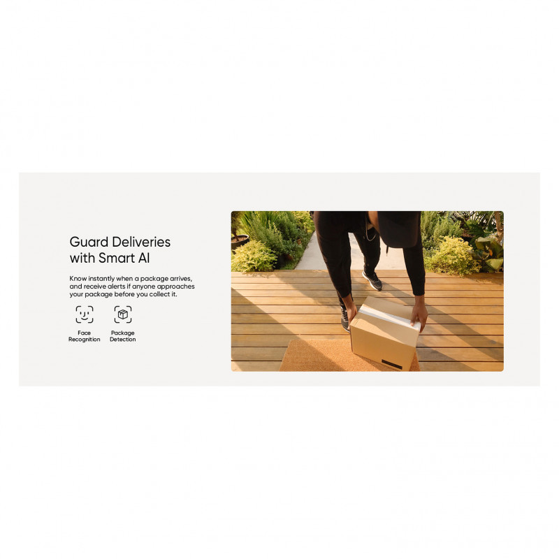 "Eufy E340 2K Dual Cameras Smart Video Doorbell with Chime. Type: IP security camera, Placement supported: Outdoor, Connectivity technology: Wireless. Mounting type: Wall, Product colour: Black, Form factor: Box. Field of view (FOV) angle: 160°. Supported video modes: 1080p, 1536p. HDD capacity: 8 GB"\n"Get crystal-clear 2K HD resolution with dual cameras for a complete view of your doorstep. The front-facing camera captures your visitors in sharp detail, while the downward-facing camera provides a clear view of the ground and packages, so nothing goes unseen.