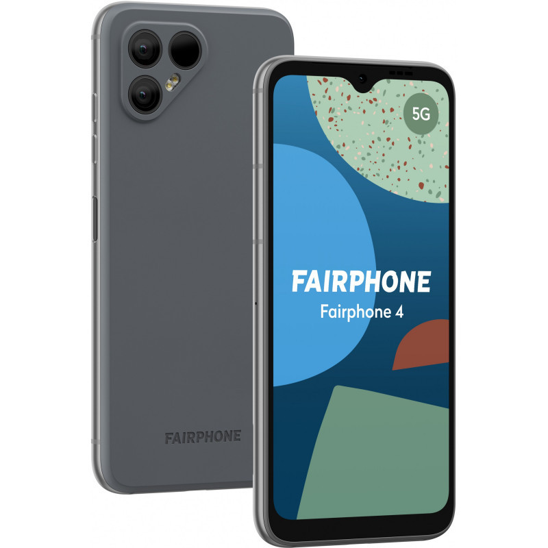 "Fairphone 4. Display diagonal: 16 cm (6.3""), Display resolution: 1080 x 2340 pixels. Processor family: Qualcomm Snapdragon, Processor model: 750G. RAM capacity: 6 GB, Internal storage capacity: 128 GB. Rear camera resolution (numeric): 48 MP, Rear camera type: Dual camera. SIM card capability: Dual SIM. Operating system installed: Android 11. Battery capacity: 3905 mAh. Product colour: Grey. Weight: 225 g"\n"SUSTAINABLE. LONG-LASTING. FAIR.