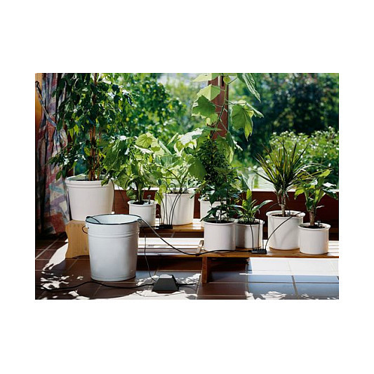 "Gardena Holiday Watering Set. Product colour: Black, Grey"\n"Plant irrigation for holidaysWith the GARDENA Holiday Watering Set up to 36 potted plants can be automatically watered. In this way you can conveniently water your plants without the watering can – and you will have an ideal substitute when you are absent. Over three different distributors each with 12 outlets various water supply requirements for certain plants can be assigned. The fully sealed low-voltage transformer can be used both indoors and outdoors."