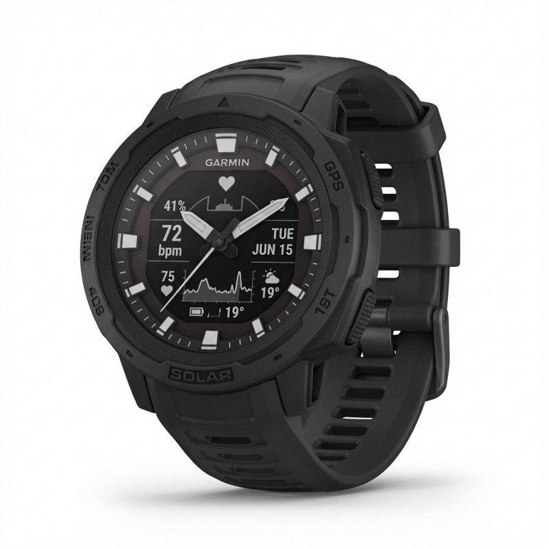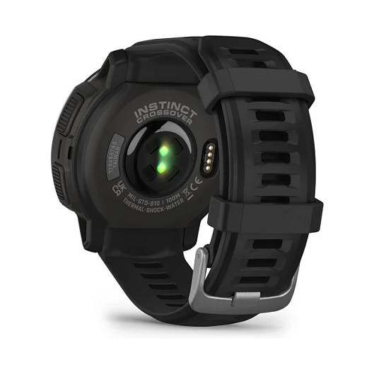"Garmin Instinct Crossover - Standard Edition. Display technology: MIP, Display resolution: 176 x 176 pixels. GPS (satellite). Weight: 65 g. Waterproof up to: 100 m, Band material: Silicone, Band colour: Black, Band size: One Size"\n
