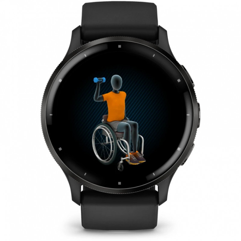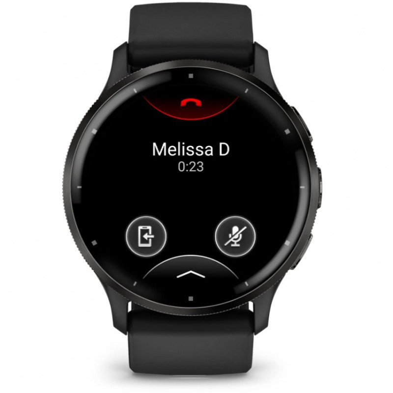 "Garmin Venu 3. Display diagonal: 3.56 cm (1.4""), Display technology: AMOLED, Display resolution: 454 x 454 pixels, Touchscreen. Wi-Fi. GPS (satellite). Weight: 46 g. Band material: Silicone, Band colour: Black, Grey"\n
