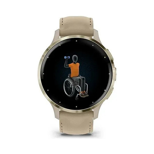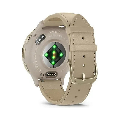 "Garmin 010-02785-55. Display diagonal: 3.05 cm (1.2""), Display technology: AMOLED, Display resolution: 390 x 390 pixels, Touchscreen. Wi-Fi. GPS (satellite). Weight: 40 g. Band material: Leather, Band colour: Gold"\n