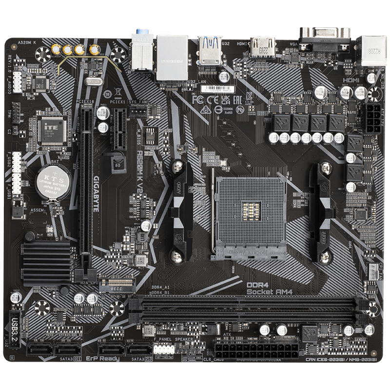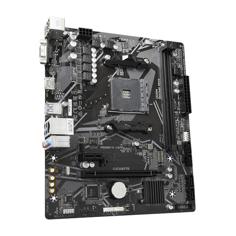 Gigabyte | A520M K V2 1.0 M/B | Processor family AMD | Processor socket AM4 | DDR4 DIMM | Memory slots 2 | Supported hard disk drive interfaces SATA, M.2 | Number of SATA connectors 4 | Chipset AMD A520 | Micro ATX