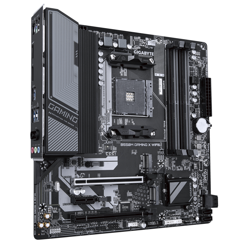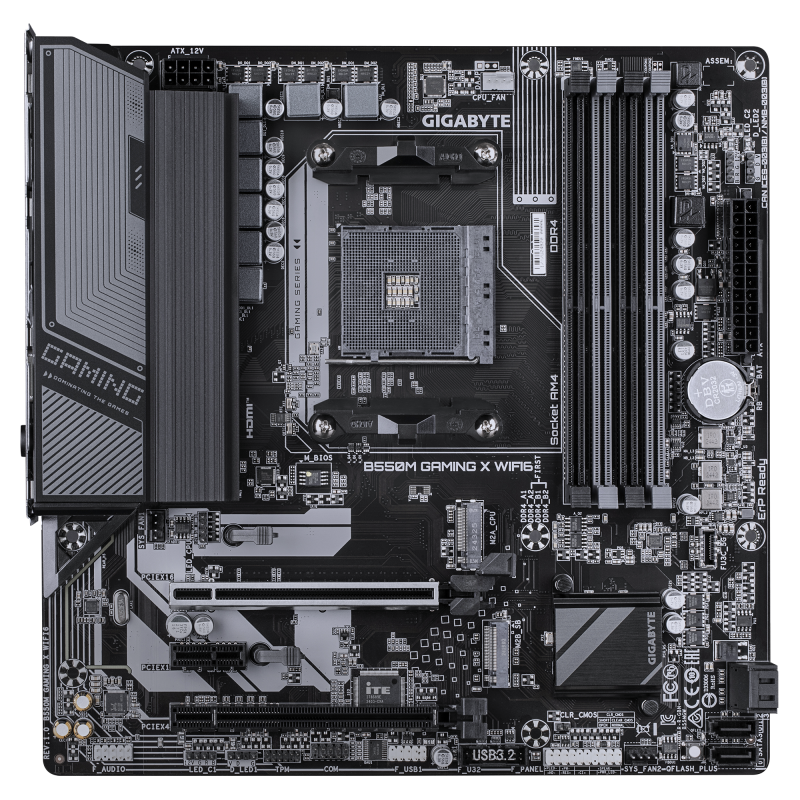 Gigabyte B550M GAMING X WIFI6 | Processor family AMD | Processor socket AM4 | DDR4 DIMM | Supported hard disk drive interfaces SATA, M.2 | Number of SATA connectors 4