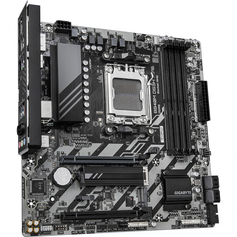 "GIGABYTE B840M DS3H WIFI6 Motherboard - AMD Ryzen 9000 CPUs, 8+2+2 Phases VRM, up to 8200MHz DDR5, 2xPCIe 4.0 M.2, Wi-Fi 6, 2.5GbE LAN, USB 3.2 Gen 1. Processor manufacturer: AMD, Processor socket: Socket AM5, Compatible processor series: AMD Ryzen 7000 Series, AMD Ryzen 8000 Series, AMD Ryzen 9000 Series. Supported memory types: DDR5-SDRAM, Maximum internal memory: 256 GB, Memory slots type: DIMM. Supported storage drive interfaces: M.2, PCI Express 4.0, SATA III, Supported storage drive types: HDD & SSD, RAID levels: 0, 1, 5, 10. Maximum resolution: 4096 x 2160 pixels. Ethernet interface type: 2.5 Gigabit Ethernet, LAN controller: Realtek RTL8125, Top Wi-Fi standard: Wi-Fi 6 (802.11ax)"\n"Elevate your computing experience with GIGABYTE's renowned motherboard series: AORUS, AERO, and GIGABYTE. Featuring innovative designs and advanced features, these boards offer exceptional performance and reliability. Whether you're a gamer, content creator, or professional, our series cater to your needs, ensuring uncompromising quality and cutting-edge technology."