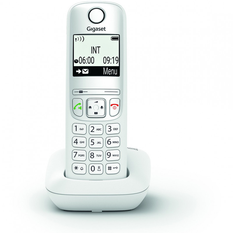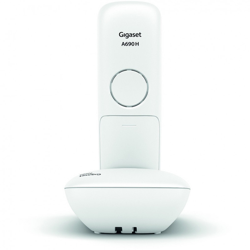 "Gigaset A690. Type: Analog telephone, Handset type: Wireless handset. Speakerphone, Phonebook capacity: 100 entries. Caller ID. Display diagonal: 5.08 cm (2""). Product colour: White. Number of handsets included: 1"\n"Simply sounds good - a DECT phone with outstanding audio features