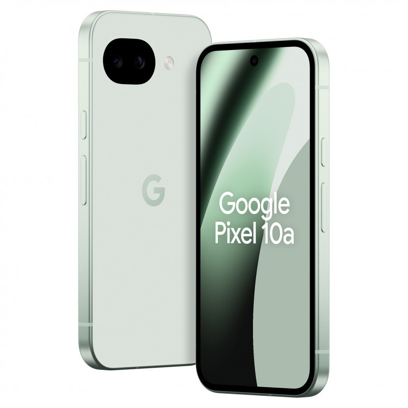 "Google Pixel 10a. Display diagonal: 16 cm (6.3""), Display resolution: 1080 x 2424 pixels. Processor family: Google, Processor model: Tensor G4. RAM capacity: 8 GB, Internal storage capacity: 128 GB. Rear camera resolution (numeric): 48 MP, Rear camera type: Dual camera. SIM card capability: Dual SIM. Operating system installed: Android 16.0. Battery capacity: 5100 mAh. Product colour: Green. Weight: 183 g"\n