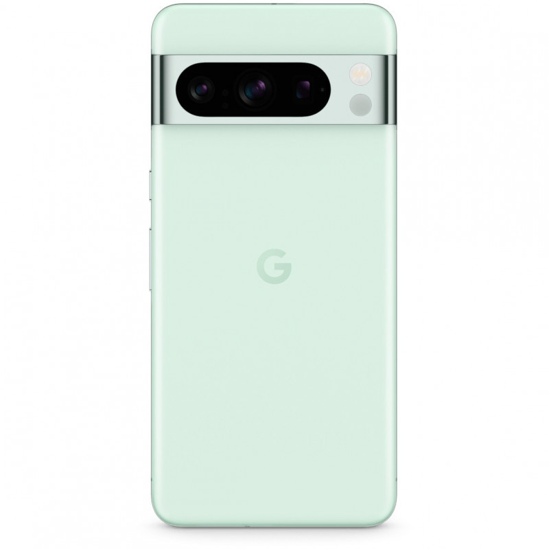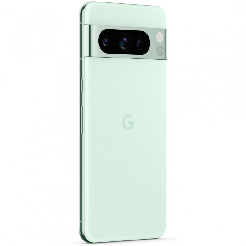 "Google Pixel 8 Pro . Display diagonal: 17 cm (6.7""), Display resolution: 1344 x 2992 pixels. Processor family: Google, Processor model: Tensor G3. RAM capacity: 12 GB, RAM type: LPDDR5X, Internal storage capacity: 128 GB. Rear camera resolution (numeric): 50 MP, Rear camera type: Triple camera. SIM card capability: Dual SIM. Battery capacity: 5050 mAh. Product colour: Mint colour. Weight: 213 g"\n"The power and brains behind Pixel 8 Pro.