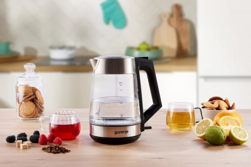 Gorenje K17OGS | Kettle | Electric | 1.7 L | 2200 W | 360° rotational base | Stainless steel/Glass | Stainless steel