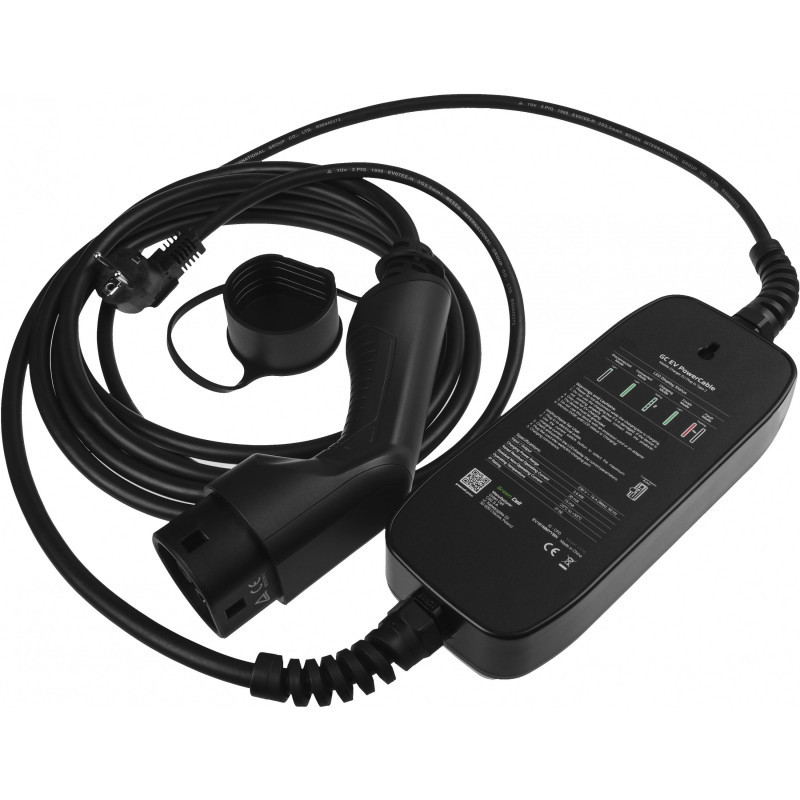 "Green Cell EV16. Product colour: Black, Display technology: LCD, Cable colour: Black. International Protection (IP) code: IP66, Vehicle connection plug: Type 2. Power source type: AC, Single-phase output voltage supported: 230 V, Nominal frequency: 50 Hz. Charging cable length: 6.5 m"\n"GC EV PowerCable is the ideal solution for those who want a reliable, universal and mobile charging system. Charge your vehicle wherever you are using a regular power outlet - no more surprises on the road