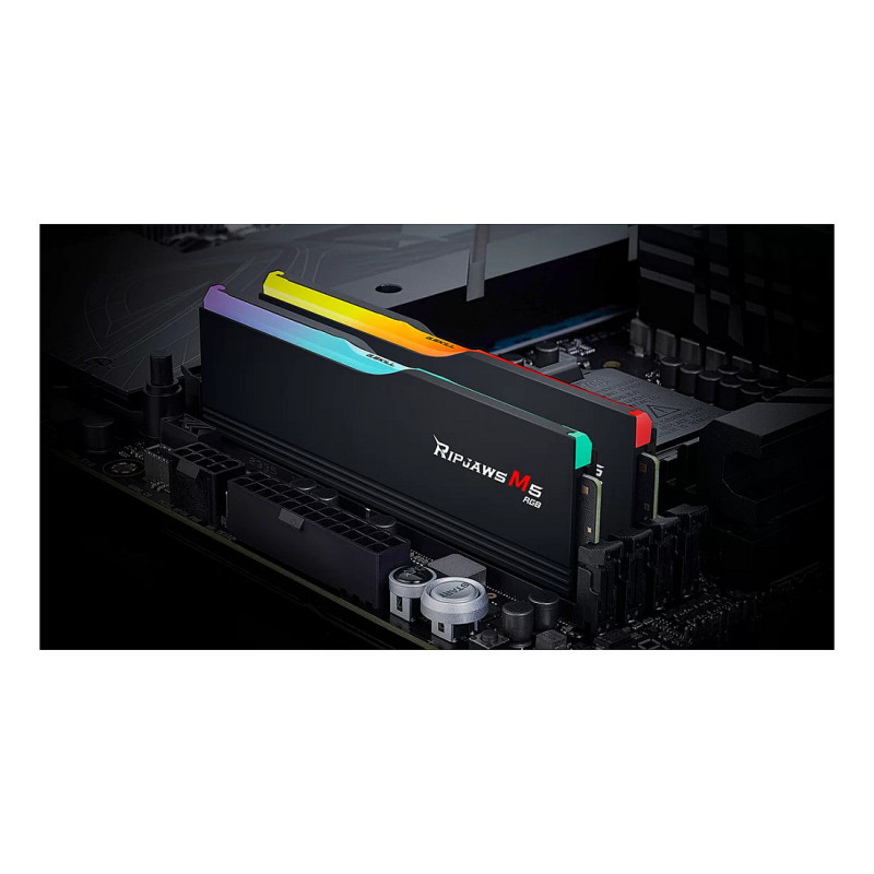 "G.Skill Ripjaws M5 RGB F5-5200J4040A48GX2-RM5RK. Component for: PC, Internal memory: 96 GB, Memory layout (modules x size): 2 x 48 GB, Internal memory type: DDR5, Memory form factor: 288-pin DIMM, CAS latency: 40"\n"Ripjaws M5 RGB is a performance DDR5 DRAM memory series designed for PC enthusiasts and gamers. Featuring matte black or matte white aluminum heatspreaders and customizable RGB lighting, the Ripjaws M5 RGB is the ideal memory kit for a wide variety of PC builds and themes.