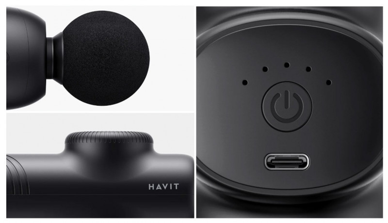 Havit Masaer rczny pistoletowy MG1508 masažuoklis Universalus Juoda