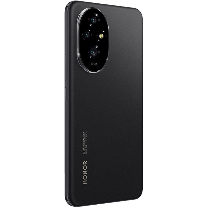 "Honor 200 5G. Display diagonal: 17 cm (6.7""), Display resolution: 2664 x 1200 pixels. Processor family: Qualcomm Snapdragon, Processor model: 7 Gen 3. RAM capacity: 12 GB, Internal storage capacity: 512 GB. Rear camera resolution (numeric): 50 MP, Rear camera type: Triple camera. SIM card capability: Dual SIM. Operating system installed: Android 14. Battery capacity: 5200 mAh. Product colour: Black. Weight: 187 g"\n"Elegant Design, Inspired by Nature.