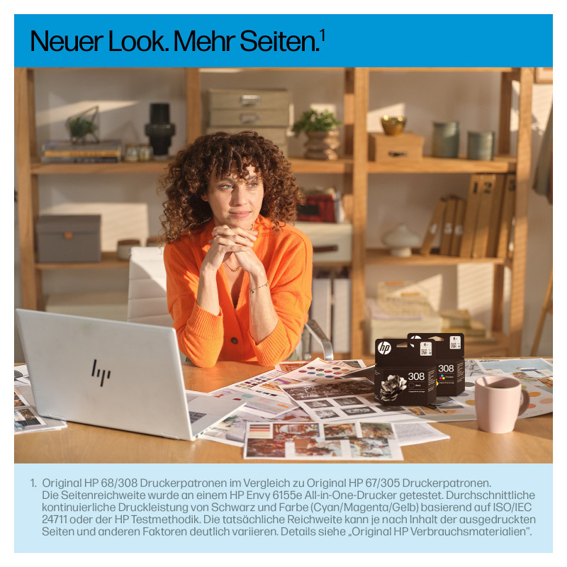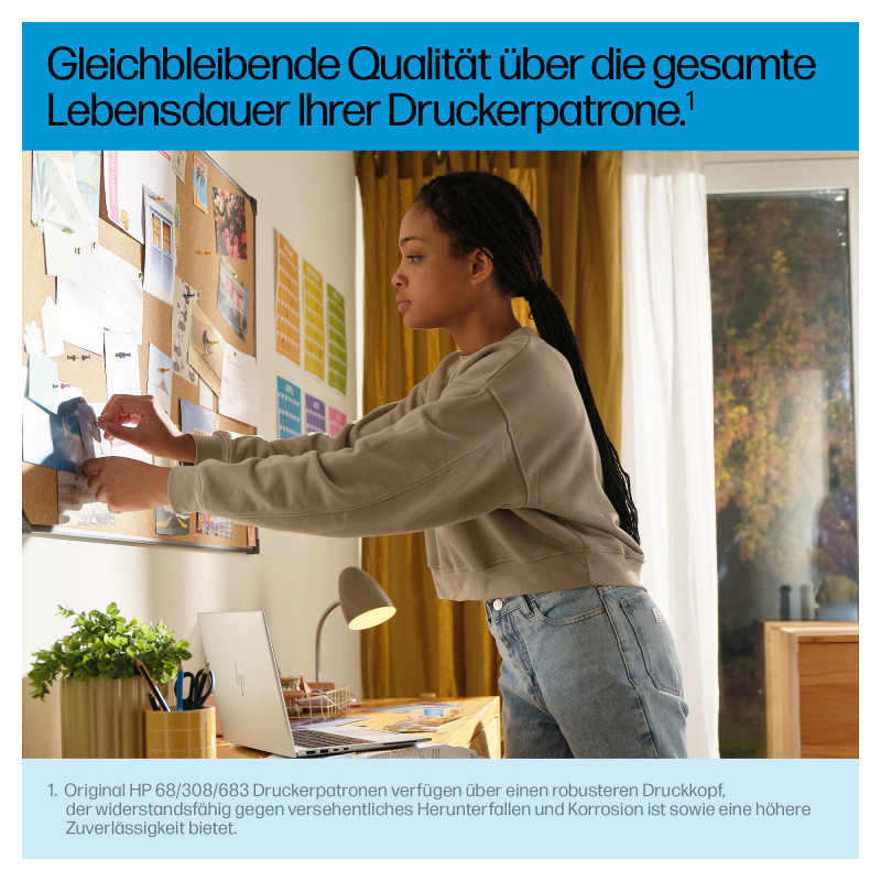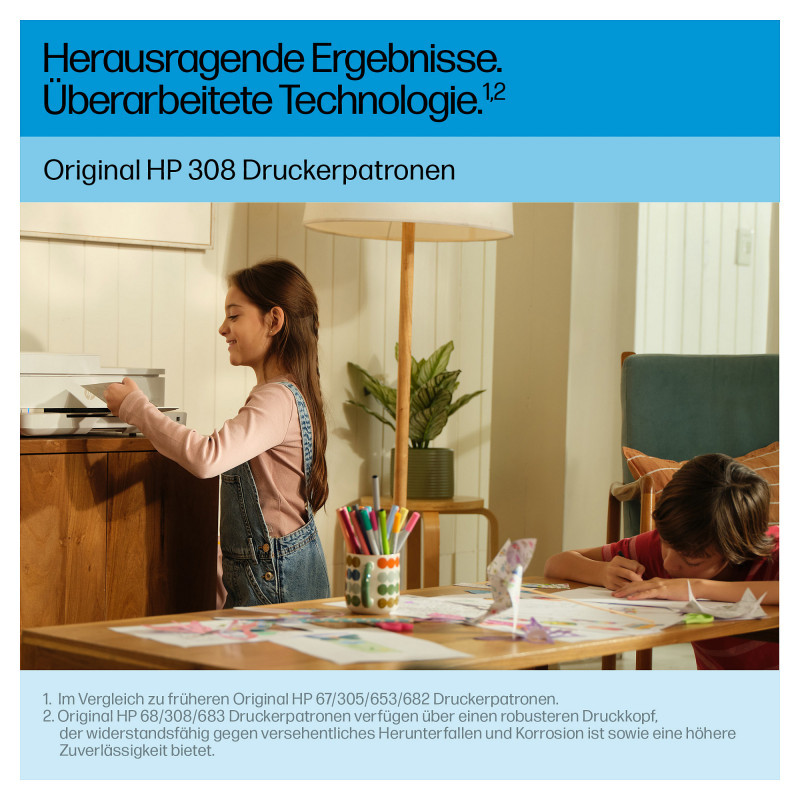 "HP 308 Black Original Ink Cartridge. Cartridge capacity: Standard Yield, Black ink type: Pigment-based ink, Supply type: Single pack, Printing colours: Black, Quantity per pack: 1 pc(s), Black ink page yield: 160 pages"\n"Ideal for low-volume home or small-business printing.