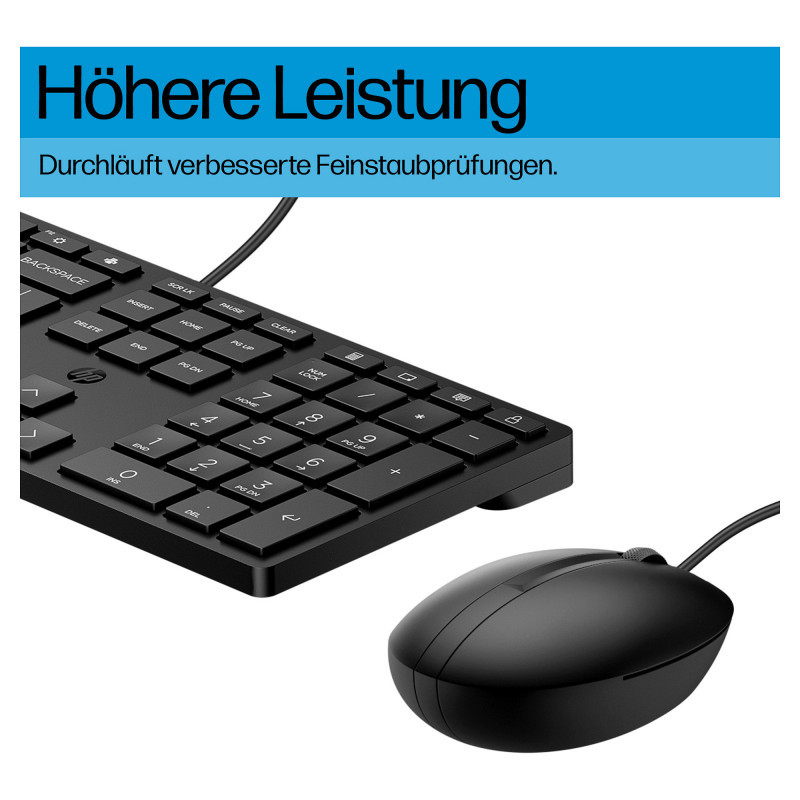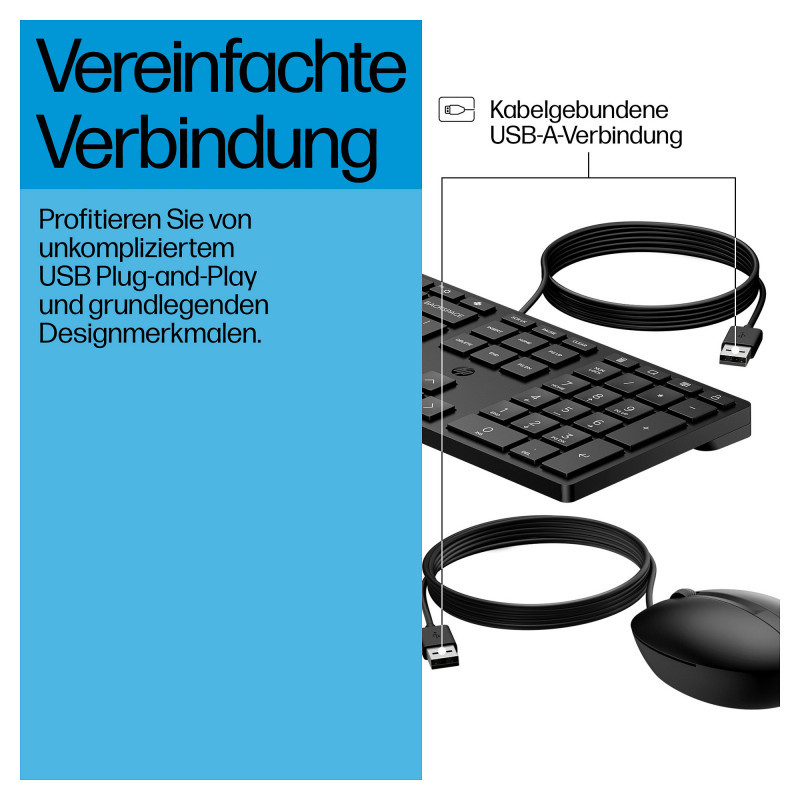 "HP Wired Desktop 320MK Mouse and Keyboard. Connectivity technology: Wired, Device interface: USB, Keyboard key switch: Membrane. Product colour: Black. Mouse included"\n"Every Day Productivity