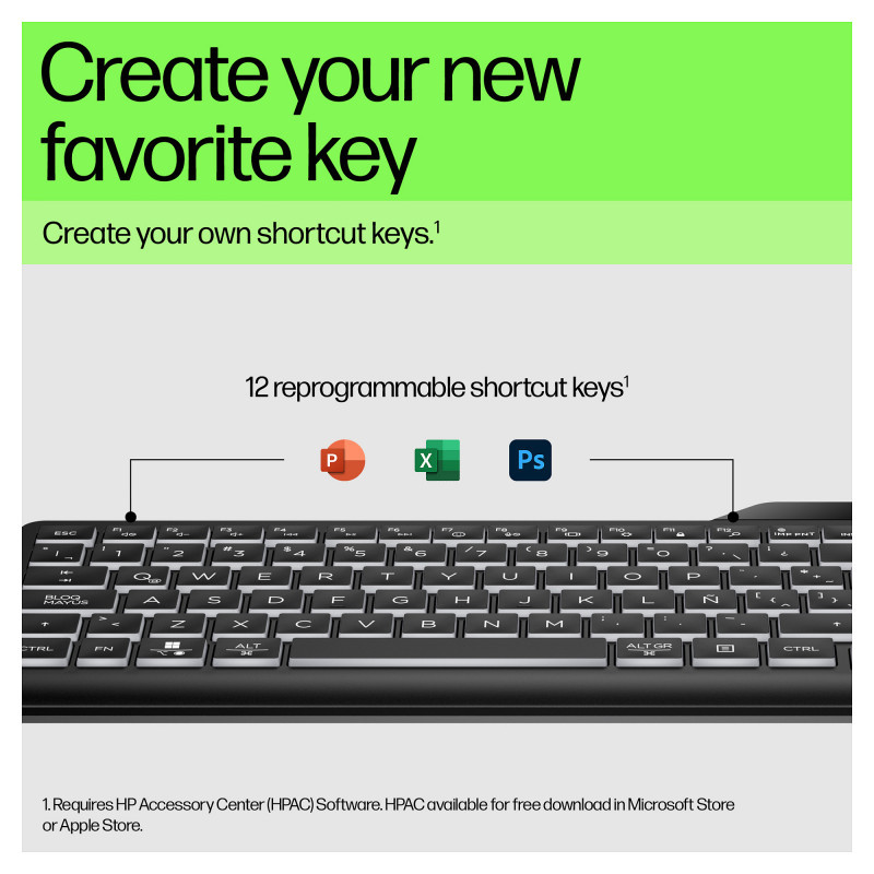 With warm white illuminated keys, this ready-to-go keyboard never misses a beat. Plug into your device and grind away with quiet keys and three levels of backlit LED glow. Plus, skyrocket your productivity with 12 programmable keys. Work and play all day on the slim and sanitizable[1] HP 400 Backlit Wired Keyboard."