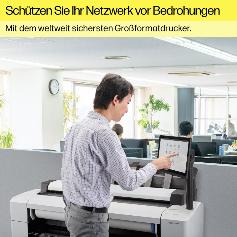 "HP Designjet T1600 36-in PostScript Printer. Print technology: Thermal inkjet, Maximum resolution: 2400 x 1200 DPI, Page description languages: PostScript 3, PDF 1.7, HP-GL/2, TIFF, JPEG, HP-RTL, CALS G4. Maximum print size: 914 x 1219 mm, Paper tray media types: Coated paper, Semi-glossy paper, Glossy paper, Bond paper, Photo paper, Matte paper, Heavy paper,..., ISO A-series sizes (A0...A9): A0, A1, A2, A3, A4. Ethernet interface type: Gigabit Ethernet, Mobile printing technologies: HP ePrint. Product colour: Black, White, Internal storage capacity: 128 GB, Sound power level (standby): 32 dB. Power supply: 100 W, Power consumption (off): 0.3 W, Power consumption (sleep): 10 W"\n" Keep the project momentum. With radically simple solutions and the easiest PDF printing[1], it's easy for everyone to get great results every time. Meet deadlines with the fastest print speed in the most compact, quiet printer.[2]