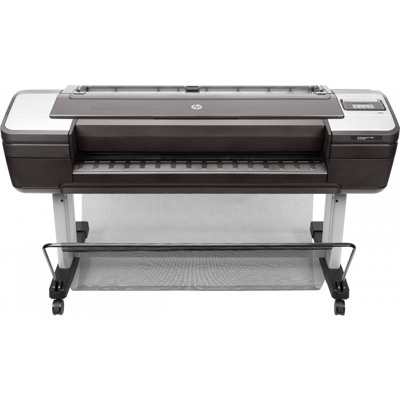 "HP Designjet T1700dr 44-in Printer. Print technology: Thermal inkjet, Maximum resolution: 2400 x 1200 DPI, Page description languages: HP-GL/2, TIFF, JPEG, CALS G4, URF. Accuracy: 0.1%. Maximum print size: 1118 x 1676 mm, Paper tray media types: Coated paper, Semi-glossy paper, Glossy paper, Bond paper, Photo paper, Matte paper, Heavy paper,..., ISO A-series sizes (A0...A9): A0, A1, A2, A3, A4. USB connector: USB Type-A, Mobile printing technologies: HP ePrint. Product colour: Grey, Internal memory: 128000 MB, Internal storage capacity: 500 GB"\n" Confidently take CAD, GIS colour reproduction to the next level with a 44-in (1118 mm) printer that delivers powerful security features, high productivity on even the most complex files with the Adobe PDF driver[2], and bright and precise colours.