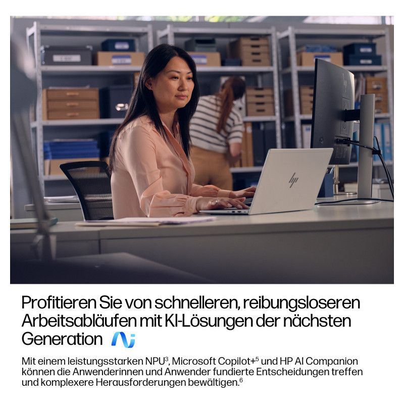 "HP EliteBook 6 G1a Next Gen AI PC. Product type: Laptop, Form factor: Clamshell. Processor family: AMD Ryzen AI 7, Processor model: 350, Processor frequency: 2 GHz. Display diagonal: 35.6 cm (14""), HD type: WUXGA, Display resolution: 1920 x 1200 pixels. Internal memory: 32 GB, Internal memory type: DDR5-SDRAM. Total storage capacity: 1 TB, Storage media: SSD. Mobile network generation: 4G. Operating system installed: Windows 11 Pro. Product colour: Silver"\n"Easily incorporate next-gen AI into your organization
