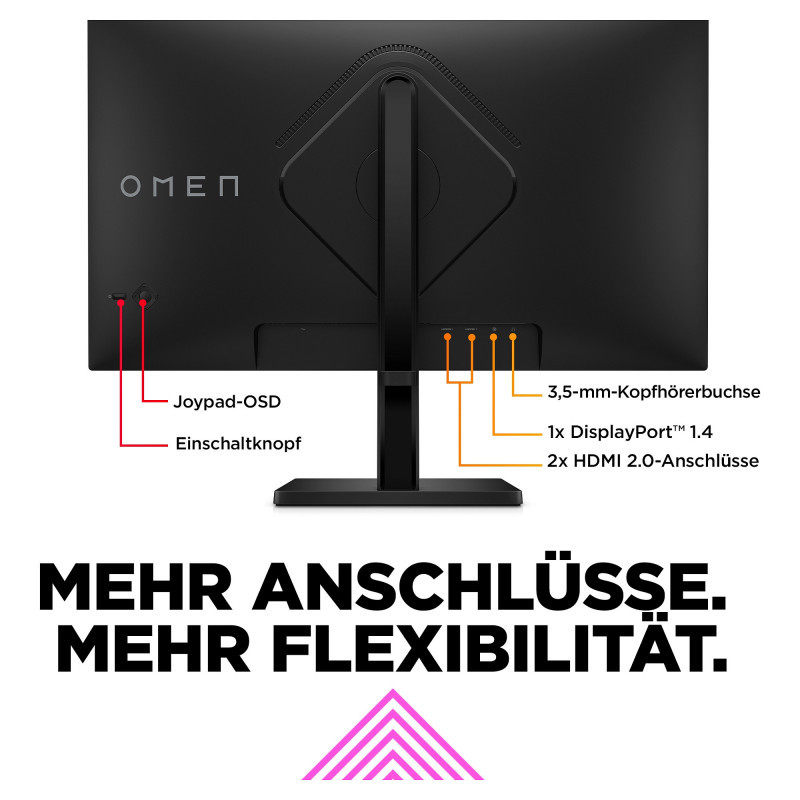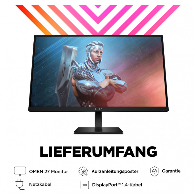 "OMEN by HP OMEN by 27 inch FHD 165Hz Gaming Monitor - OMEN 27. Display diagonal: 68.6 cm (27""), Display resolution: 1920 x 1080 pixels, HD type: Full HD, Display technology: LCD, Display surface: Matt, Response time: 1 ms, Native aspect ratio: 16:9, Viewing angle, horizontal: 178°, Viewing angle, vertical: 178°. VESA mounting, Height adjustment. Product colour: Black"\n"TAKE YOUR FUN UP A NOTCH