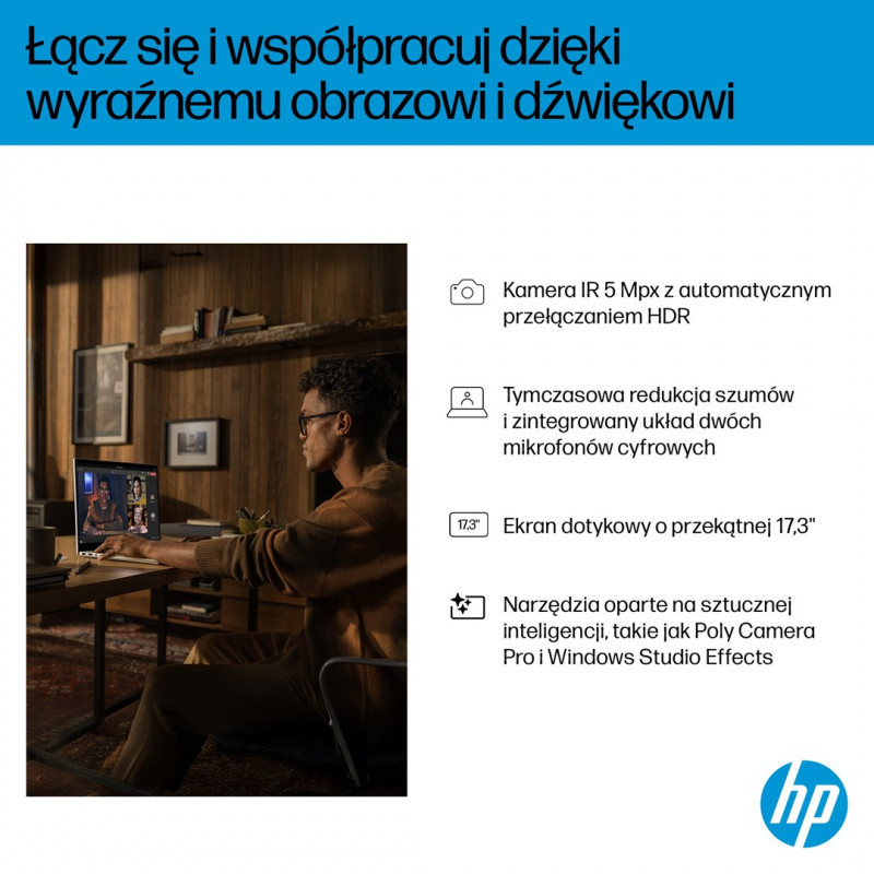 HP OmniBook 7 Next Gen AI 17-DC0073CL Copilot+ PC Intel Core Ultra 7 258V nešiojamas kompiuteris 43,9 cm (17,3") Full HD jutiklinis ekranas 32 GB LPDDR5x-SDRAM 1 TB SSD NVIDIA GeForce RTX 4050 Wi-Fi 6E (802.11ax) Windows 11 Home Silver Naujas / Repack