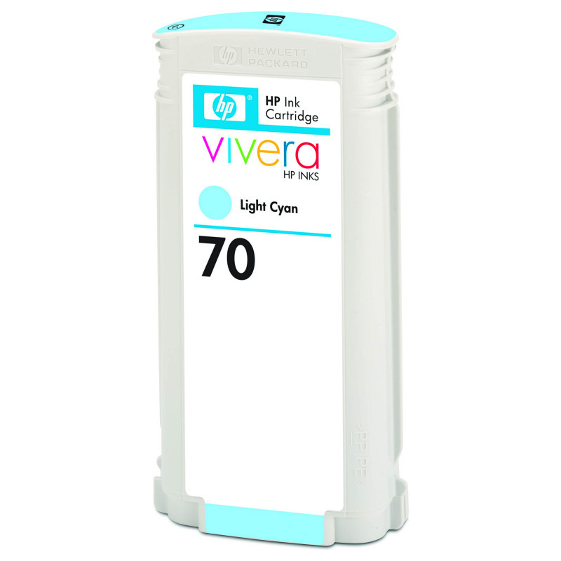 "HP 70 130-ml Light Cyan Ink Cartridge. Compatibility: HP DesignJet Z2100, Z3100, and Z3200 Photo Printer series, HP DesignJet Z5200 PostScript Printer, Print technology: Thermal inkjet, Printing colours: Cyan. Width: 40 mm, Depth: 202 mm, Height: 129 mm. Package width: 202 mm, Package depth: 40 mm, Package height: 129 mm. Master (outer) cases per pallet: 84 pc(s), Products per pallet: 1680 pc(s), Layers per pallet: 6 pc(s). Pallet dimensions (W x D x H): 1219 x 1016 x 1500 mm, Pallet size (EU): 1219 x 1016 x 1500 mm"\n"Ideal for professional photographers and graphic designers who want to produce museum-quality fine-art and photography prints, proofs and full-colour reproductions with long-lasting image stability.