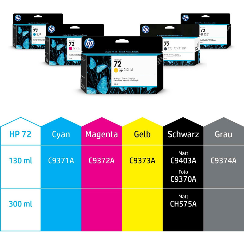 "HP 72 130-ml Photo Black Ink Cartridge. Compatibility: HP DesignJet T610 Printer series, T620 Printer series, T770 Printer series, T1100 Printer series,..., Print technology: Thermal inkjet, Printing colours: Black. Width: 202 mm, Depth: 40 mm, Height: 129 mm. Package width: 202 mm, Package depth: 40 mm, Package height: 129 mm. Master (outer) cases per pallet: 84 pc(s), Products per pallet: 1680 pc(s), Layers per pallet: 6 pc(s). Pallet dimensions (W x D x H): 1219 x 1016 x 1500 mm, Pallet size (EU): 1219 x 1016 x 1500 mm"\n"Ideal for professionals and workteams who print technical applications.