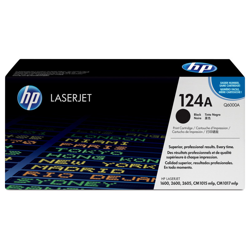 "HP 124A Black Original LaserJet Toner Cartridge. Black toner page yield: 2500 pages, Printing colours: Black, Quantity per pack: 1 pc(s)"\n"HP 124 LaserJet Printing Supplies with HP ColorSphere toner are tuned with the printing system to optimise quality and reliability for brilliant, photo-quality printing."