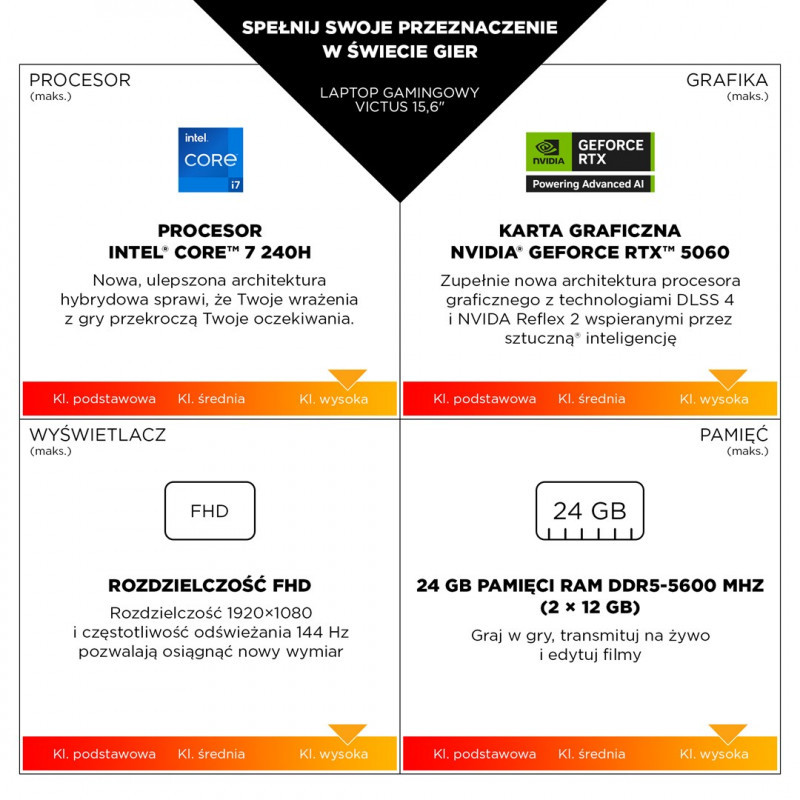 HP Victus 15-fa2243nw i5-13420H 15.6"FHD IPS 144Hz 300nits AG 16GB DDR4 3200 SSD512 GeForce RTX 4050_6GB Cam720p 70Wh Win11 Silver Mica 2Y