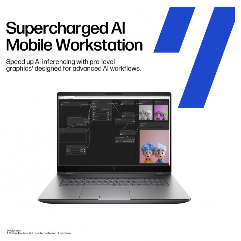 "HP ZBook Fury G1i. Product type: Mobile workstation, Form factor: Clamshell. Processor family: Intel Core Ultra 7, Processor model: 265HX. Display diagonal: 45.7 cm (18""), HD type: WQXGA, Display resolution: 2560 x 1600 pixels. Internal memory: 32 GB, Internal memory type: DDR5-SDRAM. Total storage capacity: 1 TB, Storage media: SSD. On-board graphics card model: Intel Graphics, Discrete graphics card model: NVIDIA RTX PRO 3000 Blackwell. Operating system installed: Windows 11 Pro. Product colour: Silver"\n"So powerful you’ll forget it’s a laptop.