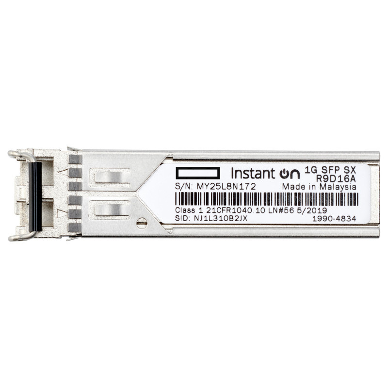 "HPE Aruba Networking Networking Instant On 1G SFP LC SX 500m OM2 MMF Transceiver. SFP transceiver type: Fiber optic, Maximum data transfer rate: 1000 Mbit/s, Interface type: SFP. Width: 13 mm, Depth: 15 mm, Height: 56 mm. Quantity per pack: 1 pc(s). Weight (imperial): 0.0454 kg (0.1 lbs)"\n.
