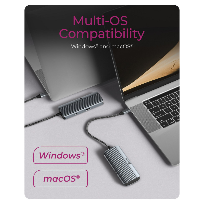 "ICY BOX IB-DK4022a-CPD. Connectivity technology: Wired, Host interface: USB 3.2 Gen 1 (3.1 Gen 1) Type-C, USB Power Delivery up to: 100 W. Product colour: Aluminium, Silver, Data transfer rate: 5 Gbit/s, HD type: 4K Ultra HD. Power source type: USB, Output voltage: 20 V, Output current: 5 A. Width: 113 mm, Depth: 45 mm, Height: 15 mm. Package weight: 172 g"\n