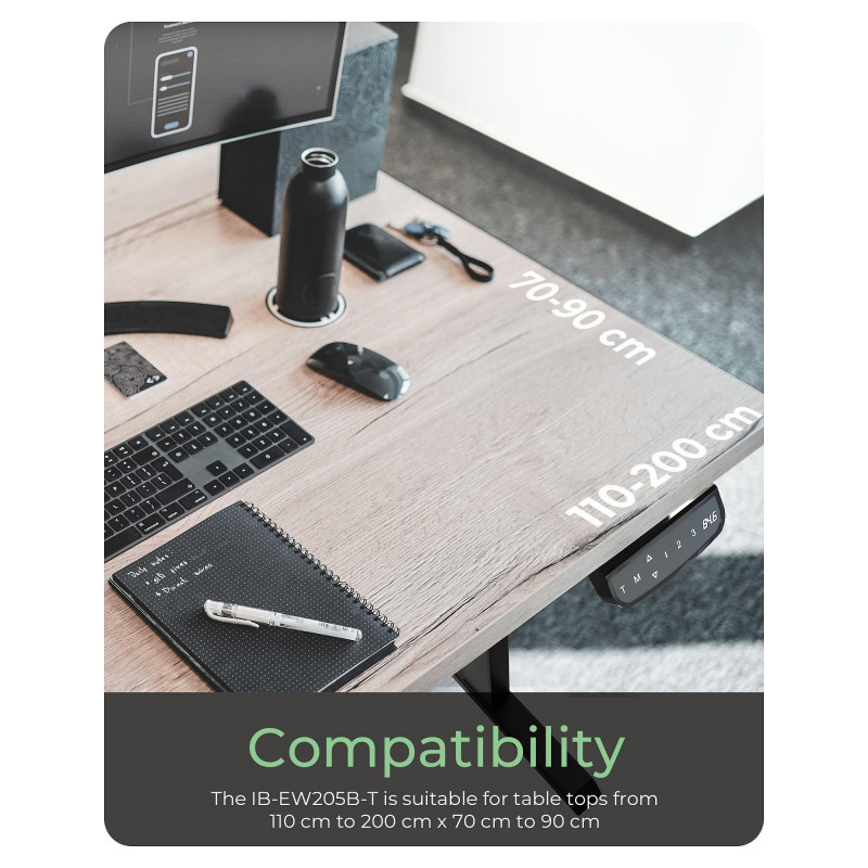 Studies suggest that switching from sitting to standing offers several health benefits and can increase productivity. With the IB-EW206B-T, you can now easily achieve the perfect balance between sitting and standing throughout the workday. We have the simple option to create a high quality sit/stand desk solution if you want a solution without unnecessary accessories and high costs. It is perfect for offices, schools, homes and most workspaces and integrates your existing tabletops.