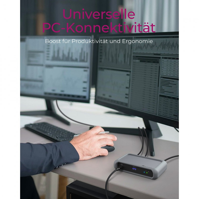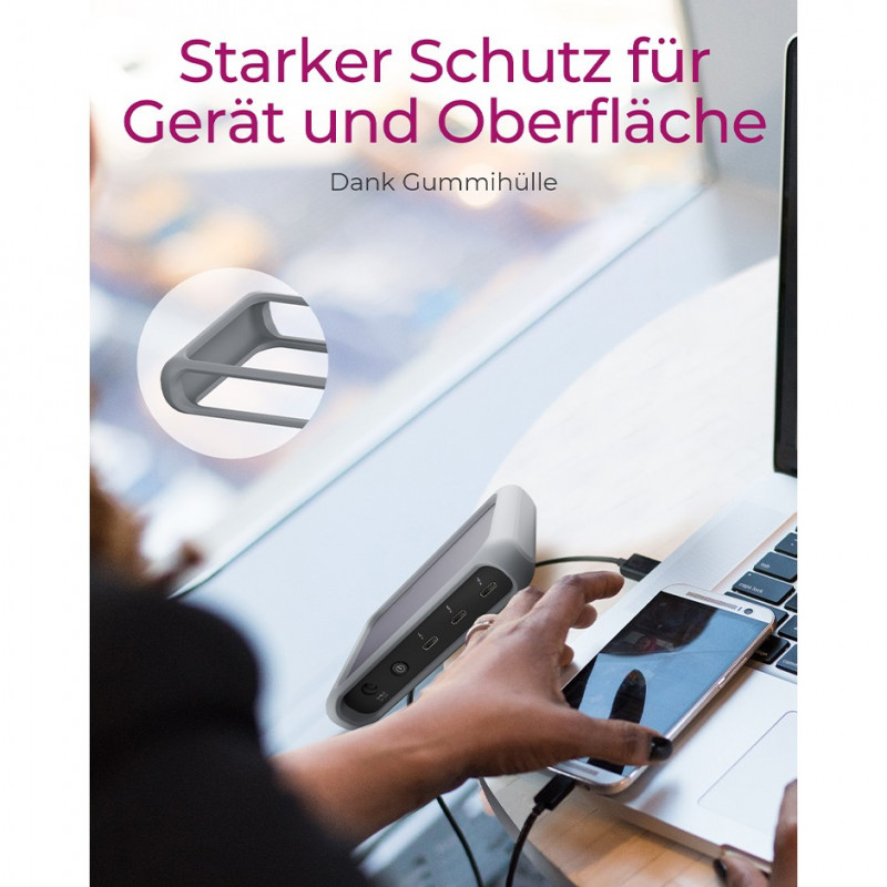When you connect the hub to your notebook, your notebook can draw up to 85 watts of charging power via the Power Delivery feature when needed. With 85 watts notebook charging power, the IB-HUB801-TB4 outperforms most comparable Thunderbolt™ 4 hubs, which usually deliver up to 60 watts in comparison.