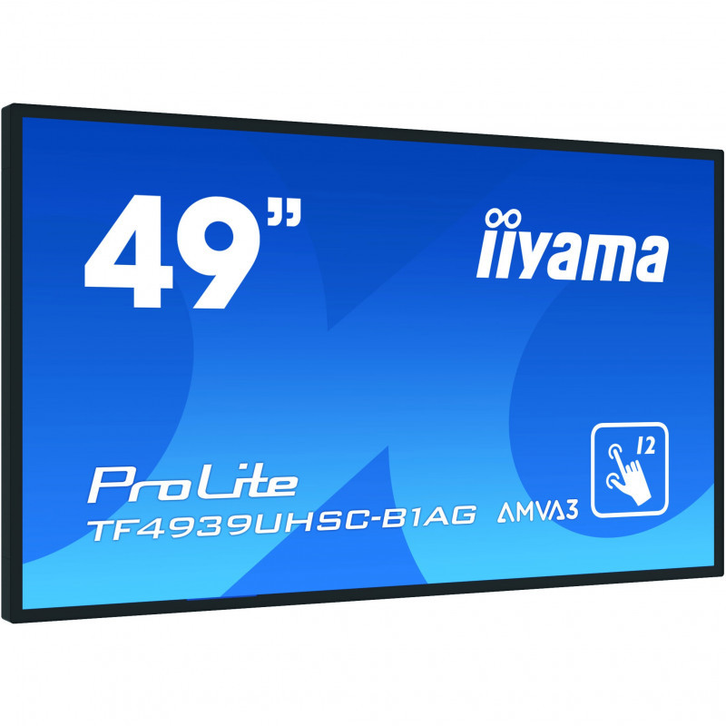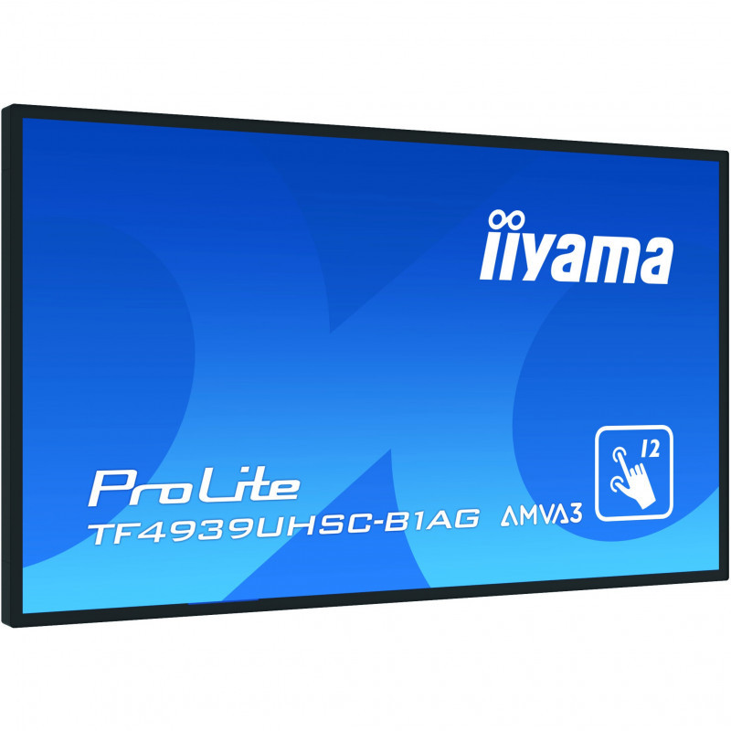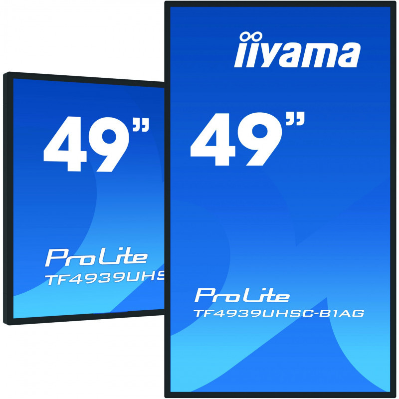 "iiyama ProLite TF4939UHSC-B1AG. Display diagonal: 124.5 cm (49""), Display resolution: 3840 x 2160 pixels, HD type: 4K Ultra HD, Display technology: LED, Response time: 8 ms, Native aspect ratio: 16:9, Viewing angle, horizontal: 178°, Viewing angle, vertical: 178°. Built-in speaker(s). VESA mounting. Product colour: Black"\n"The 4K UHD (3840x2160) Open Frame TF4939UHSC-B1AG with Touch-Through-Glass function guarantees a seamless and accurate touch response for true kiosk integration or interactive behind-glass-retail applications. The IPS panel technology offers exceptional colour performance and wide viewing angles, making it a perfect solution for interactive shop windows, education, kiosks and in-store communications. Featuring a metal housing with 60950-1 ball-drop proof, scratch-resistant and edge-to-edge glass, this display can be installed in the most demanding environments for an 24/7 usage and in different set-ups as a result of its Open Frame side mounting holes. For ease of integration, the TF4939UHSC-B1AG can be equipped with optional external mounting brackets ( OMK4-2 ) making it an ideal solution for kiosk integrators and interactive multimedia."