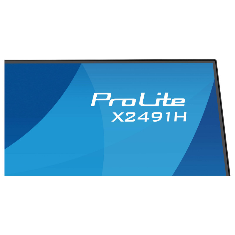 "iiyama ProLite X2491H-B1. Display diagonal: 60.5 cm (23.8""), Display resolution: 1920 x 1080 pixels, HD type: Full HD, Display technology: LCD, Display surface: Matt, Native aspect ratio: 16:9, Viewing angle, horizontal: 178°, Viewing angle, vertical: 178°. VESA mounting. Product colour: Black"\n"The ProLite X2491H features a 24'' Full HD display with a sleek 4-side slim bezel design, helping you create a clean and modern multi-monitor workspace. The IPS panel delivers sharp detail, vivid colours and consistent brightness from all angles. With a fast 120Hz refresh rate, visuals remain smooth and responsive, whether you're working on complex tasks or enjoying multimedia. Flicker-free technology and a blue light reducer enhance eye comfort, especially during extended use. A headphone socket provides convenient audio connectivity for private listening and online calls. With EPEAT Silver registration, TCO Certified compliance and an Energy Label C rating, the X2491H supports both efficient work and responsible energy use."