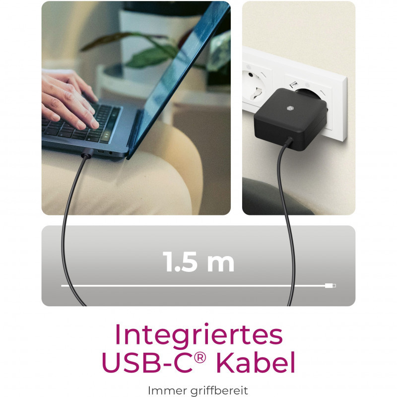 Harness the force of 65 W USB Power Delivery 3.0, flowing through a seamlessly integrated cable. Redefining convenience and efficiency, the design ensures rapid charging tailored to your device's needs. No more cable jumbles: Just pure, direct energy when and where it matters most."