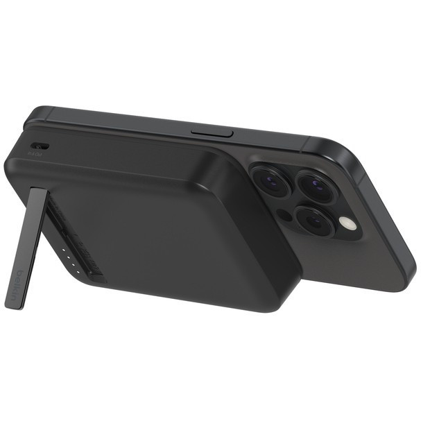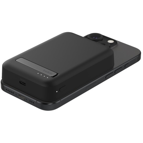 "Belkin BoostCharge Pro. Wireless charging. Total output power: 15 W. Product colour: Black"\n"Wirelessly charge iPhone and other Qi2-enabled smartphones quickly and safely with our BoostCharge Pro Magnetic Power Bank with Qi2 15W 10K§. Your Qi2 and MagSafe compatible devices will have easy and seamless on-the-go charging up to 15W. Watch video, stream or create content at the perfect viewing angle with the integrated kickstand — even while your device is charging.