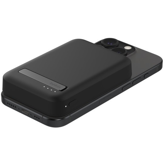"Belkin BoostCharge Pro. Battery capacity: 8000 mAh. USB Type-C ports quantity: 1. Wireless charging. Total output power: 15 W. Product colour: Black"\n"Wirelessly charge iPhone and other Qi2-enabled smartphones quickly and safely with our BoostCharge Pro Magnetic Power Bank with Qi2 15W 8K§. Your Qi2 and MagSafe compatible devices will have easy and seamless on-the-go charging up to 15W. Watch video, stream or create content at the perfect viewing angle with the integrated kickstand — even while your device is charging."