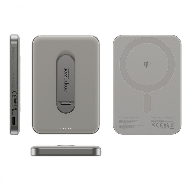 • Ultra Compact design, 0.43 inches (11mm) thick• Portrait and landscape modes with kickstand function: Ideal for viewing videos, gaming, video calls, and notifications• MagSafe Compatible• Magnetic, Qi2 wireless charging • Up to 80% extra battery• Versatile USB-C port: bi-directional for charging the empower bank or other devices• 70% Post-consumer recycled aluminum, plastic-free packaging