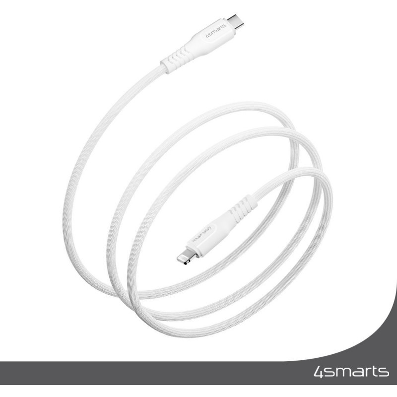 "4smarts 465592. Cable length: 1.5 m, Connector 1: USB C, Connector 2: Lightning. Weight: 40 g. Quantity per pack: 1 pc(s), Package width: 95 mm, Package depth: 20 mm"\n"Charging with Power Delivery 30W and data transfer at up to 480Mbps