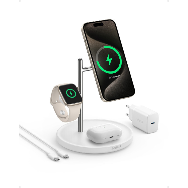 Effortlessly power up your Apple devices with Anker MagGo Wireless Charging Station. Just unfold, place your phone, AirPods, and Apple Watch for easy, simultaneous charging.