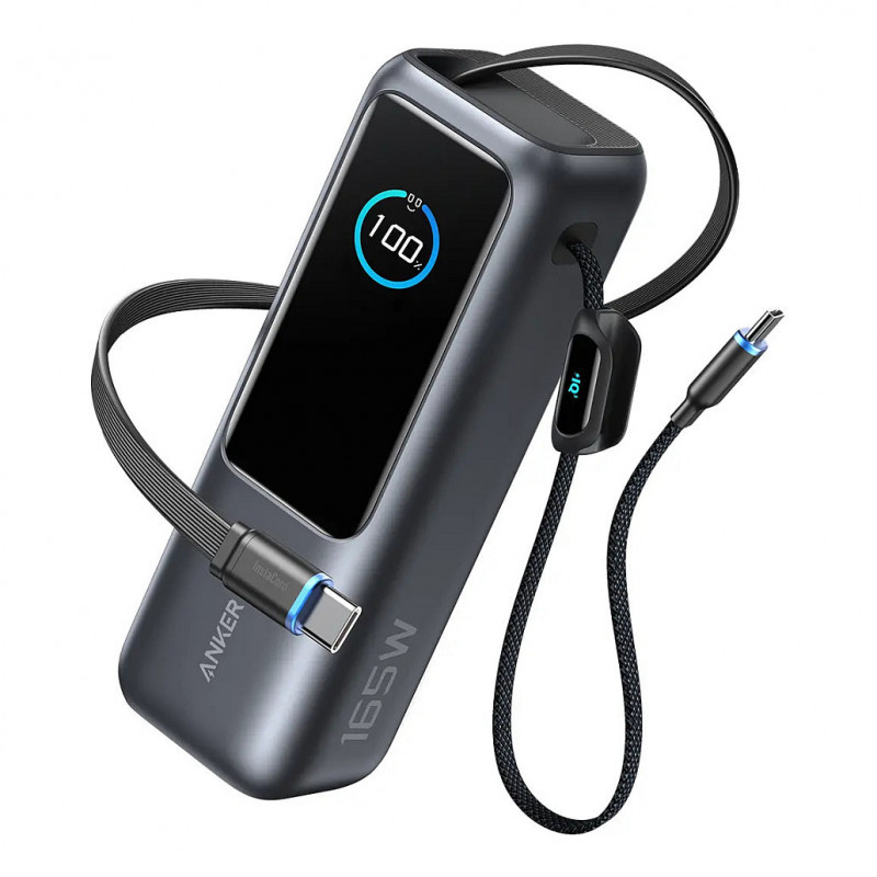 ANKER PowerBank 25.000mAh 165W 3x 100W USB-C 1x USB-A mit Smart Display zwei integrierte Ladekabel schwarz