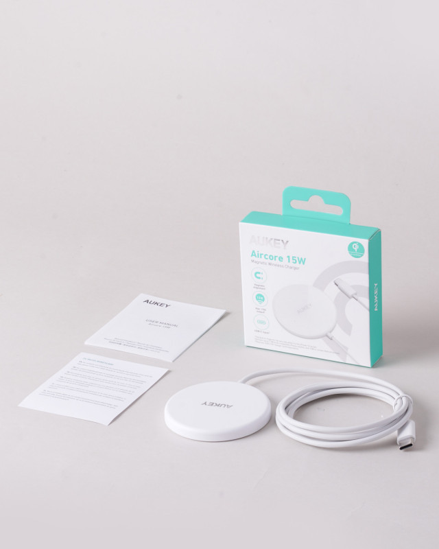 AUEKY Aircore Magnetic LC-A1 Belaidis magnetinis įkroviklis QI USB-C 15W Balta