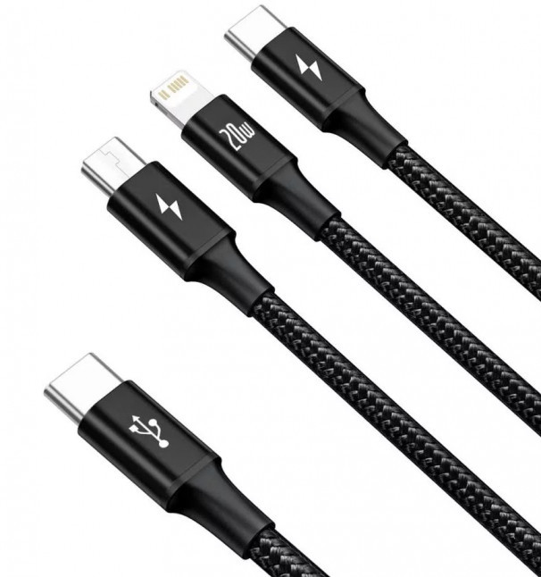 Baseus Rapid Series 3-in-1 cable USB-C For M+L+T 20W 1.5m Black