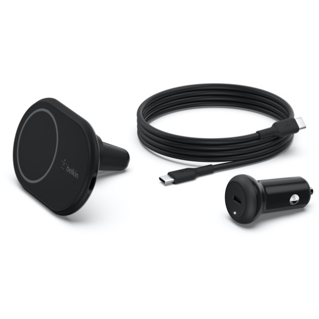 "Belkin WIC004BTBK. Charger type: Auto, Power source type: USB, Charger compatibility: Smartphone, Wireless charging. Cable length: 1.2 m, Product colour: Black"\n"Magnetic Charging On-The-Go